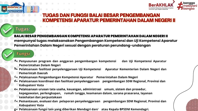 Berdasarkan Peraturan Menteri Dalam Negeri Nomor 11 Tahun 2025 tentang Organisasi dan Tata Kerja Unit Pelaksana Teknis pada Badan Pengembangan Sumber Daya Manusia sebagai pengganti dari Peraturan Menteri Dalam Negeri Nomor 84 Tahun 2017 tentang Organisasi dan Tata Kerja Unit Pelaksana Teknis di Lingkungan Badan Pengembangan Sumber Daya Manusia Kementerian Dalam Negeri sebagaimana telah diubah dengan Peraturan Menteri Dalam Negeri Nomor 3 Tahun 2021, kami sampaikan hal-hal sebagai berikut:
